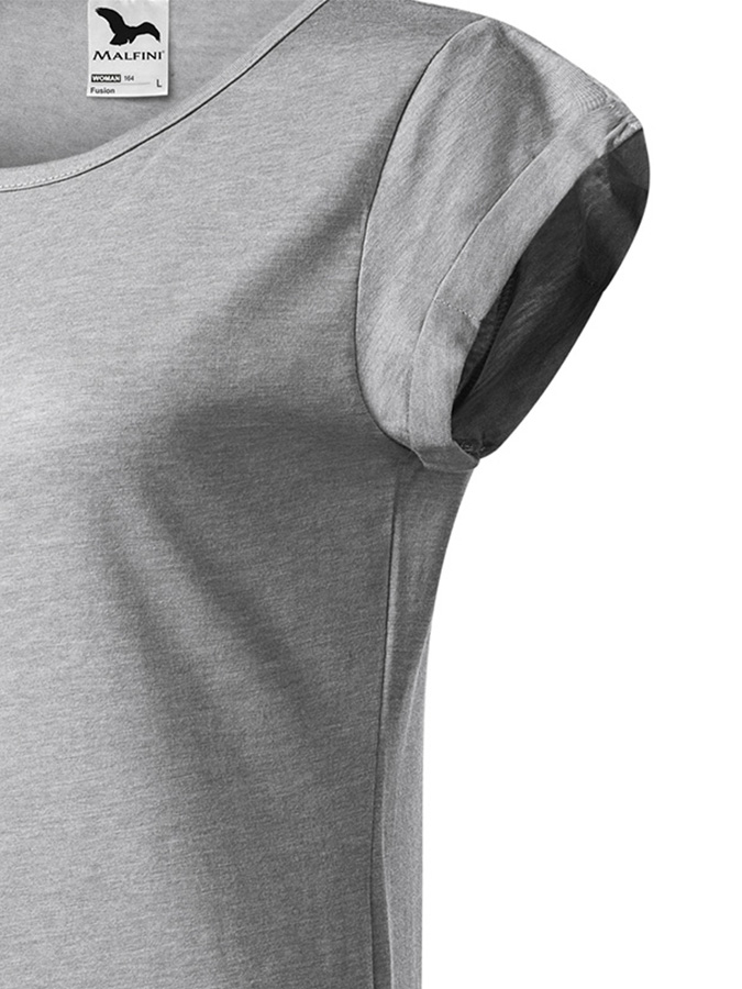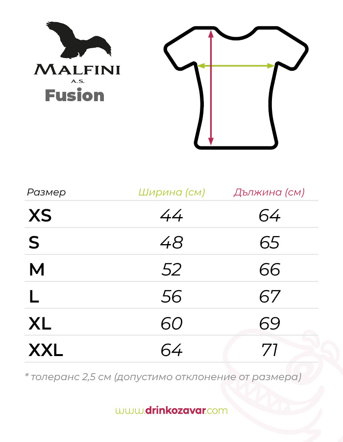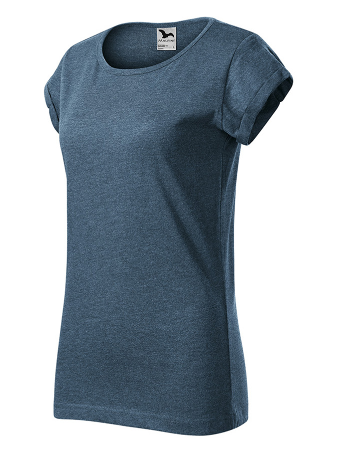Различен и стилен модел тениска на Малфини, подходяща за печат по твоя идея с надпис и/или картинка. Предлага се в различни меланжирани цветове, които придават допъллнителна уникалност на крайния продукт - тениска с печат по твоя идея.