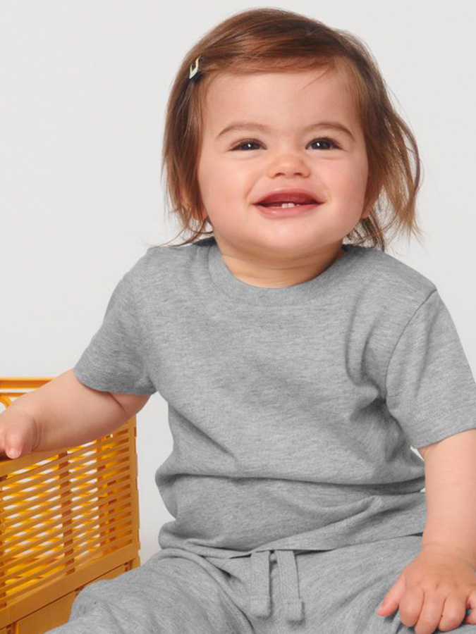 Тениската е изработена от 100% органичен памук. Изключително мека и приятна материя, съобразена с нежната и чувствителна бебешка кожа.