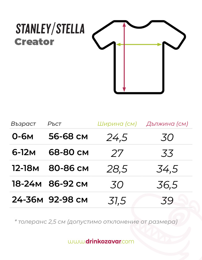 Само сега бебешкият модел от премиум серията тениски Creator на Stanley/Stella на супер намалена цена.