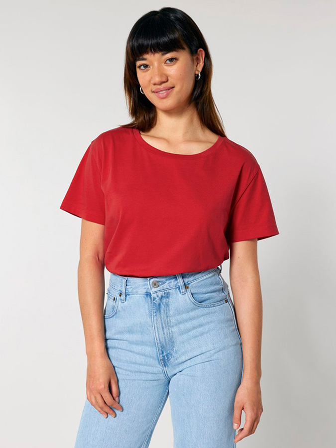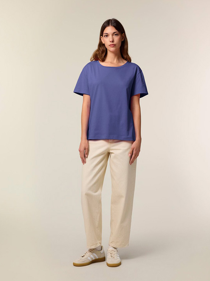 Новият модел овърсайз дамска тениска с къс ръкав Stella Serena на белгийския бранд Stanley/Stella е изработена от фин органичен памук. Свободната кройка я прави подходяща за всеки вкус и различни комбинации, като предоставя мекота и комфорт.. Характерно за този модел е широкото деколте и "падналите" ръкави.