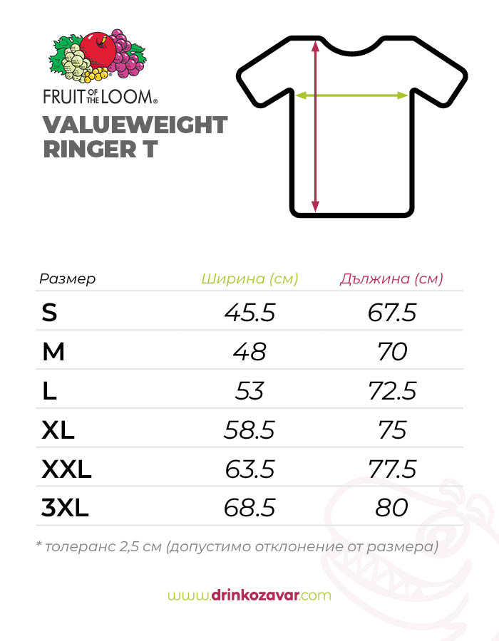 Мъжка тениска Ring на Fruit of the Loom е разновидност на най-разпространеният модел тениски VALUEWEIGHT T.