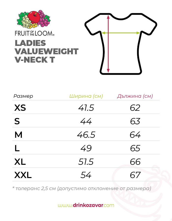 Дамска тениска с В-образно деколте на Fruit of the Loom е разновидност на най-разпространеният модел VALUEWEIGHT T.
