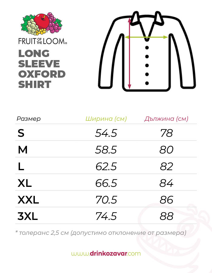 Мъжка официална риза Оксфорд с дълъг ръкав и джоб на Fruit of the Loom. Плътната материя и високото съдържание на памук я правят изключително удобна и приятна за ежедневно употреба.