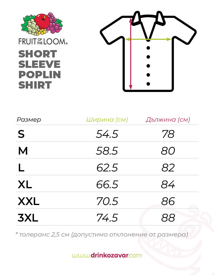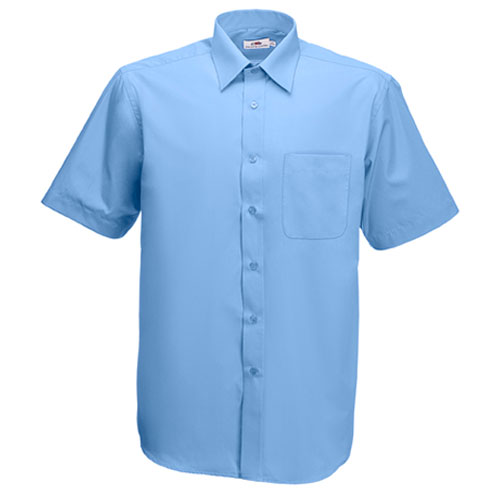 Мъжка официална риза Poplin с къс ръкав и джоб на Fruit of the Loom. Подходяща е както за бизнес облекло, така и за работно.