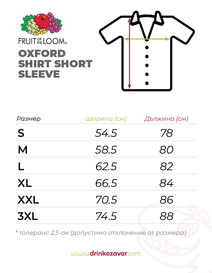 Мъжка официална риза Оксфорд с къс ръкав и джоб на Fruit of the Loom. Плътната материя и високото съдържание на памук я правят изключително удобна и приятна за ежедневно употреба.