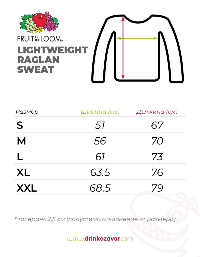 Мъжка блуза от олекотена вата с реглан ръкави на Fruit of The Loom.