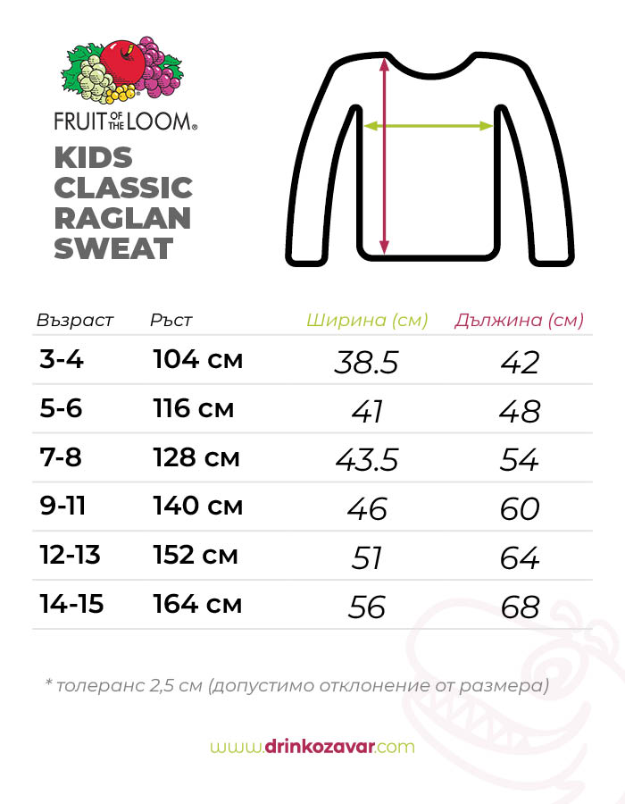 Детска ватена блуза с реглан ръкави на Fruit of The Loom от серията Classic.