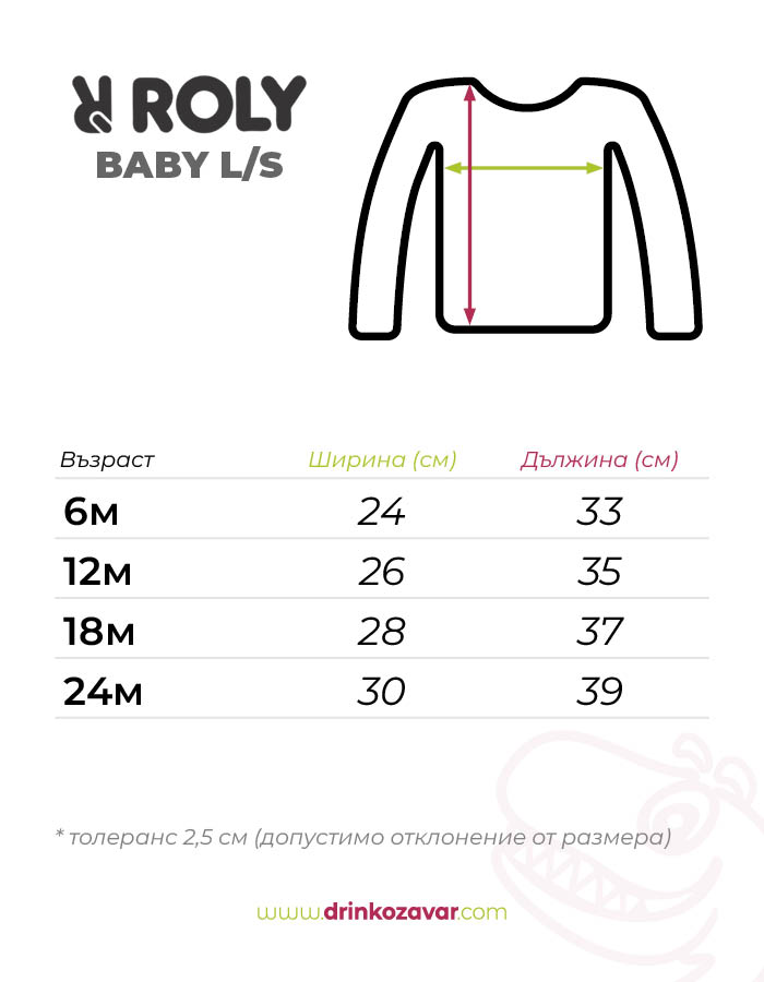 Размерите от 6м до 18м са с копчета на рамото за по-удобна употреба!