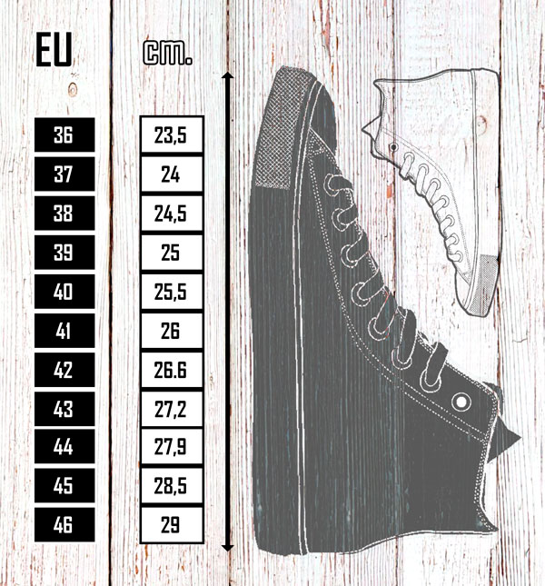Примерните изображения не са на реално отпечатани кецове и може да има някои разлики с крайния продукт от гледна точка на позициониране. За реално напечатани кецове виж Галерията в блога. Размерите са универсали от 36 до 46.