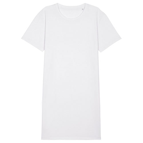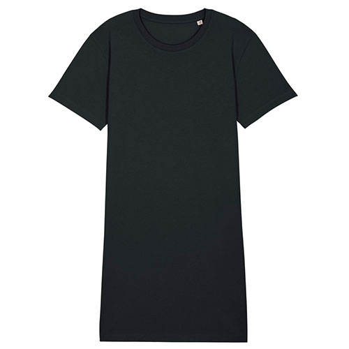 Дълга тениска с къс ръкав тип "рокля" със свободна кройка и дължина над коляното. Материята е плътна и изработена от 100% сертифициран органичен памук.
