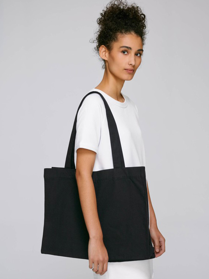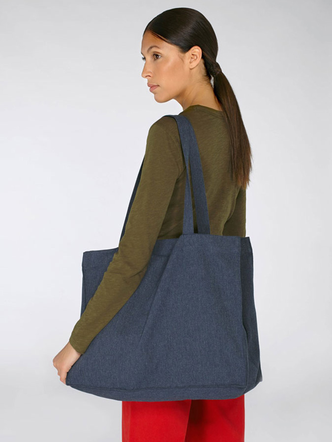 Широка текстилна чанта, изработена от плътен органичен памук и рециклиран полиестер. Изключително здрава подходяща за различни дейности!