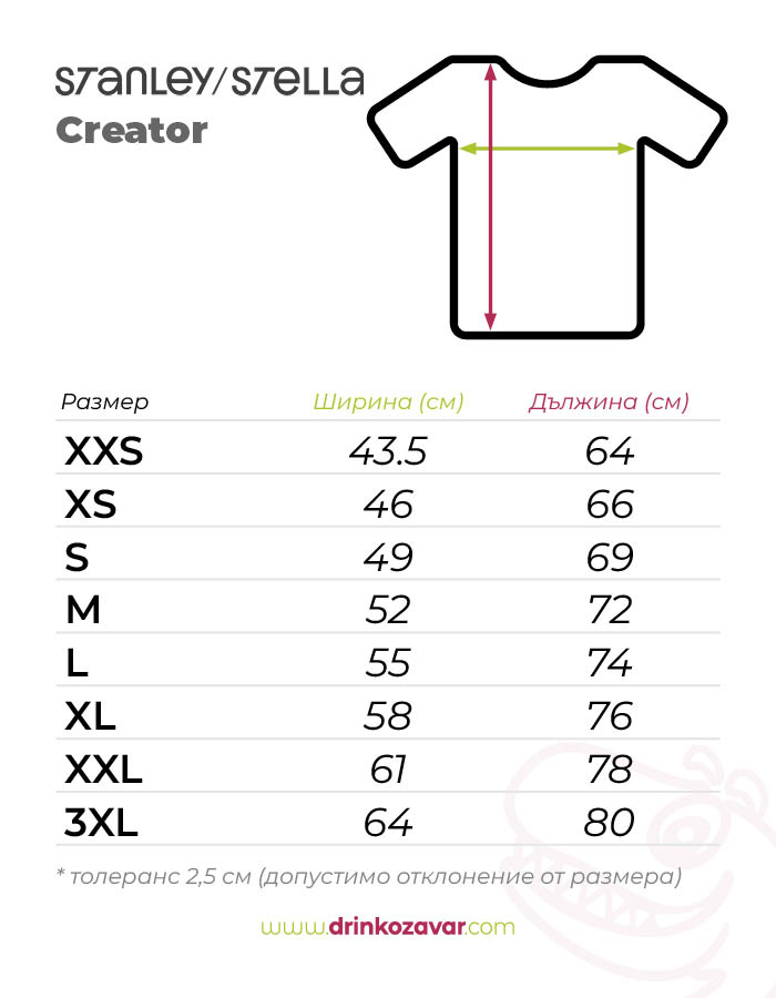 Висококачествена мъжка тениска на Stanley/Stella от луксозната серия Creator тениска. Изработена от 100% плътен органичен памук, тениската е идеална за по-студените сезони, като осигурява изключително качество, комфорт и устойчивост.
